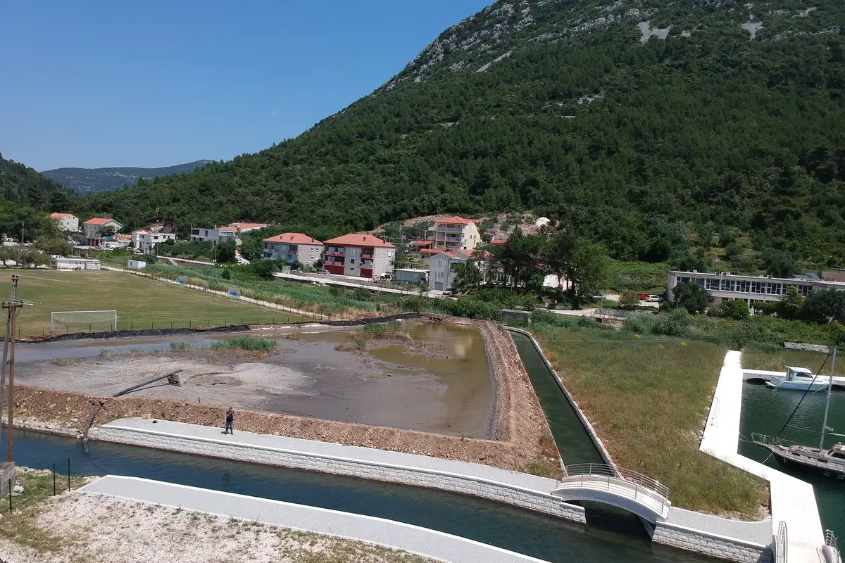 Luka je plitka (uz obalu ima 2 metra dubine) povezana je sa morem uskim i plitkim kanalom koji je označen plutačama.